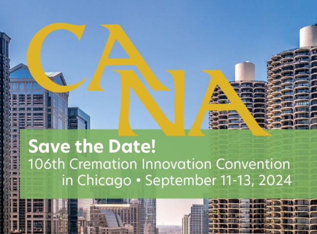 CANA’s Cremation Innovation Convention is coming to Chicago -September 11- September 13, 2024. It will be taking place at the Fairmont Chicago Millenium Park – 200 N Columbus Dr, Chicago IL 60601.